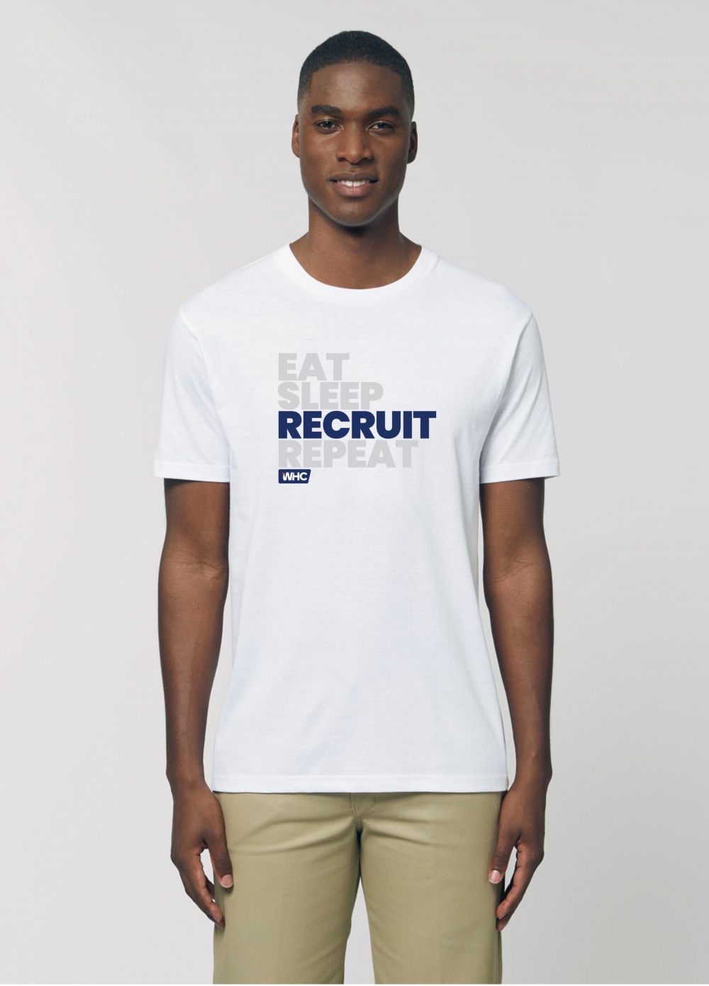 Eat Sleep Recruit Repeat - 100% biopamut - fehér férfi póló - WHC